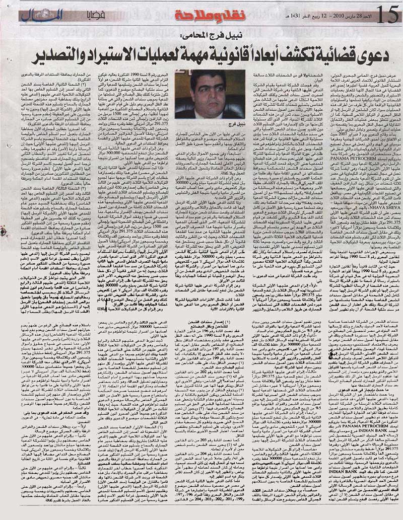 “A Lawsuit that reveals important legal dimensions for import and export operations” in which he explained in detail how those significant dimensions are reflected in this lawsuit”