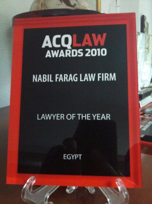 Nabil Farag Law Firm, Was awarded the prize of ACQ Law Award winner 2010, in the “Lawyer” of the Year” 2010″.