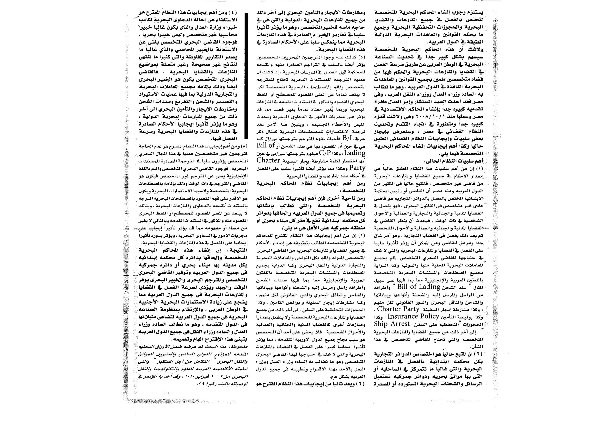 Mr.Nabil Farag ‘s opinion about the maritime law in Egypt and his proposal about the establishment of specialized maritime courts in Egypt .