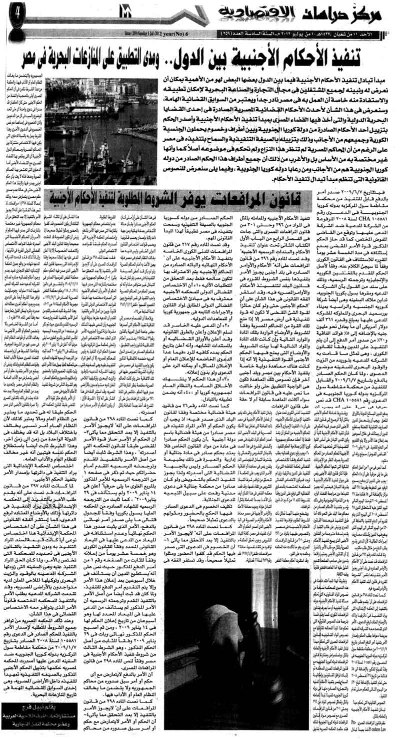 “Implementation of foreign judgments between states and the extent of the application on maritime disputes in Egypt”.