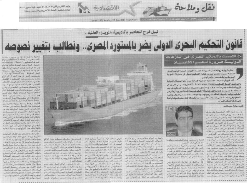International Maritime Arbitration Law Causes Harm To the Egyptian Importer..We demand Changing Its Provisions”