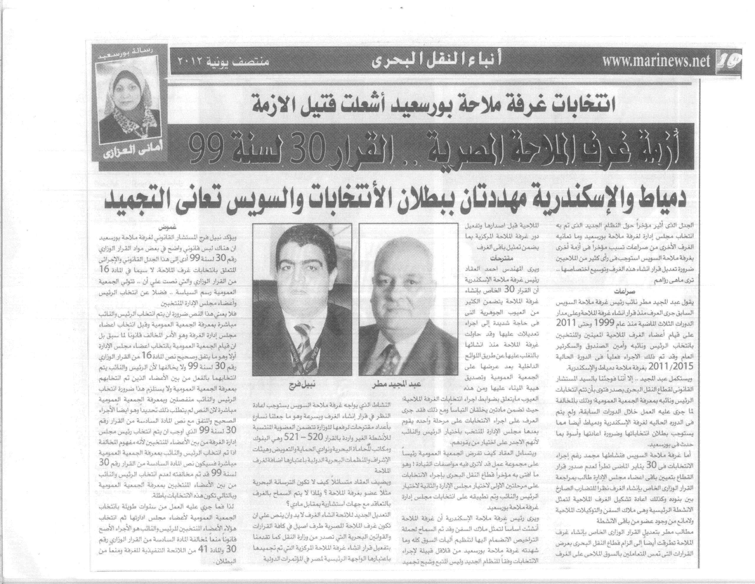 “the Crisis of the Egyptian Shipping Chamber … Resolution No. 30 for the Year 99”